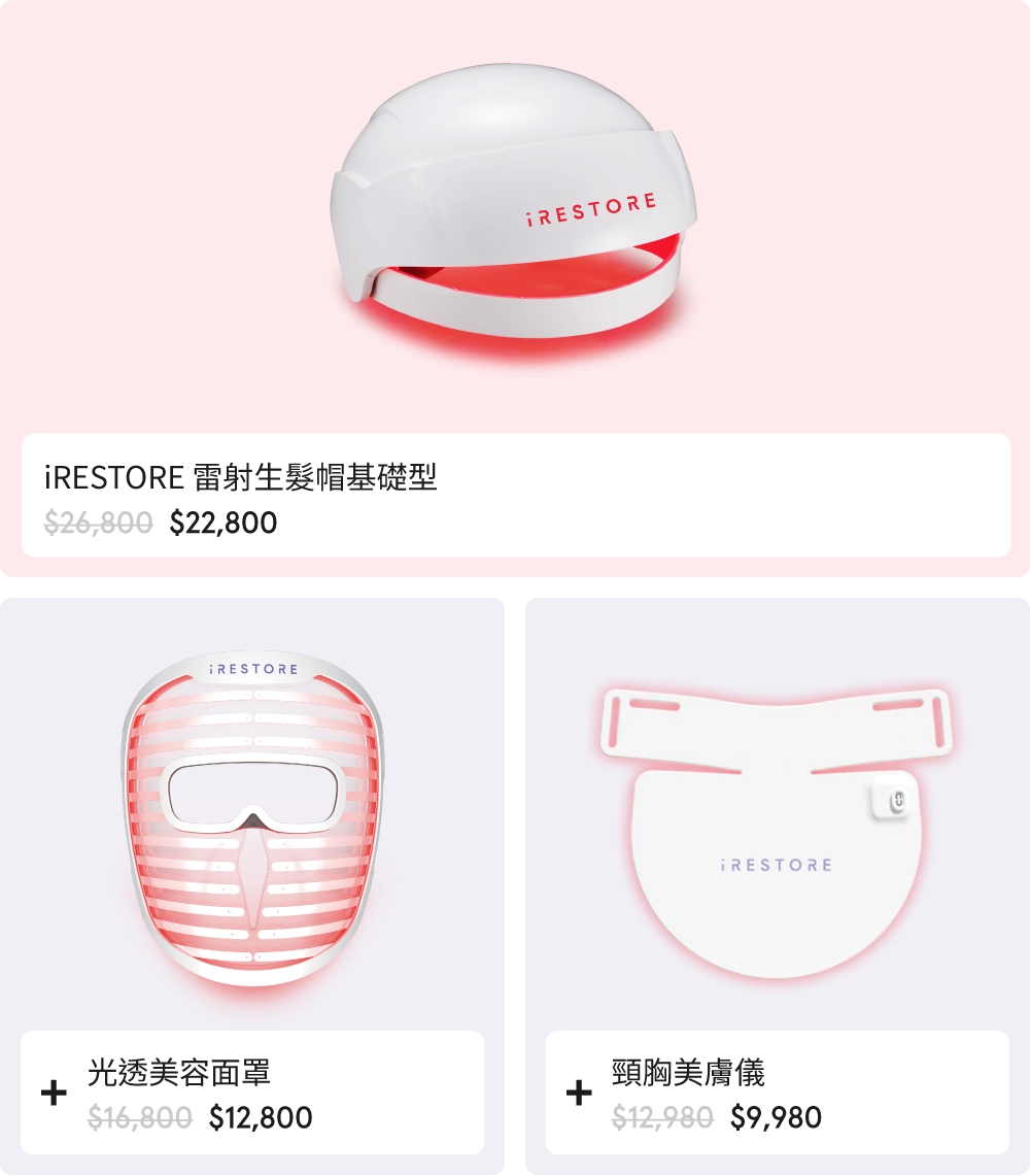 iRESTORE 雷射生髮帽旗艦型 + 光透美容面罩 + 頸胸美膚儀