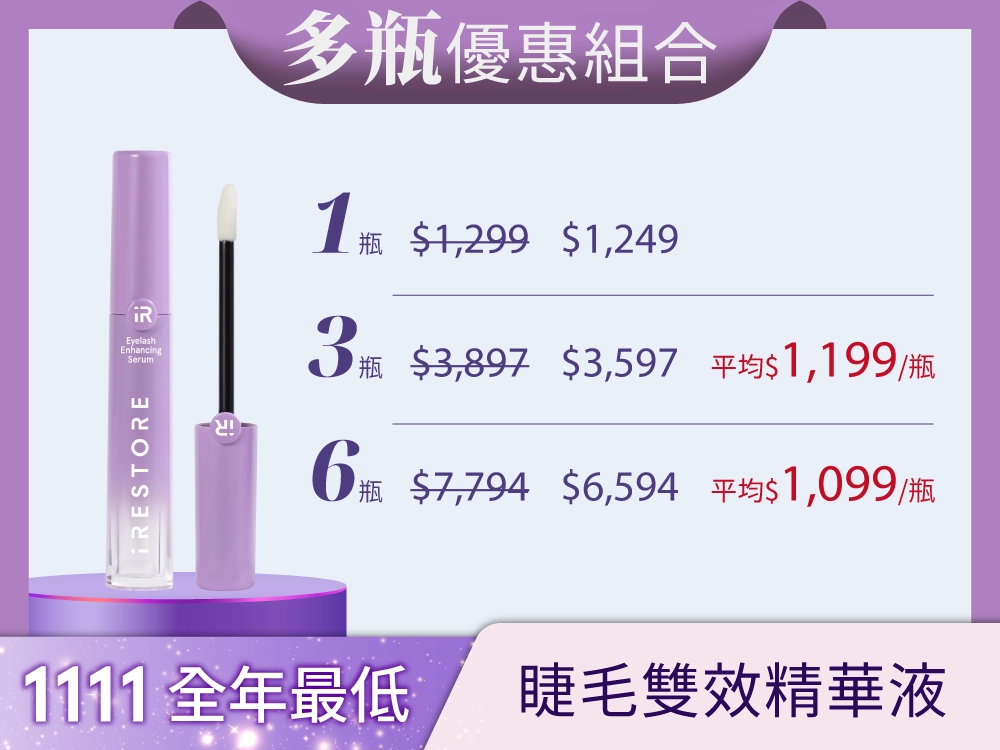 | 數量組合優惠 | 1瓶(現省$50), 3瓶 (現省$300,每瓶$1,199), 6瓶 (現省$1200,每瓶$1,099) |