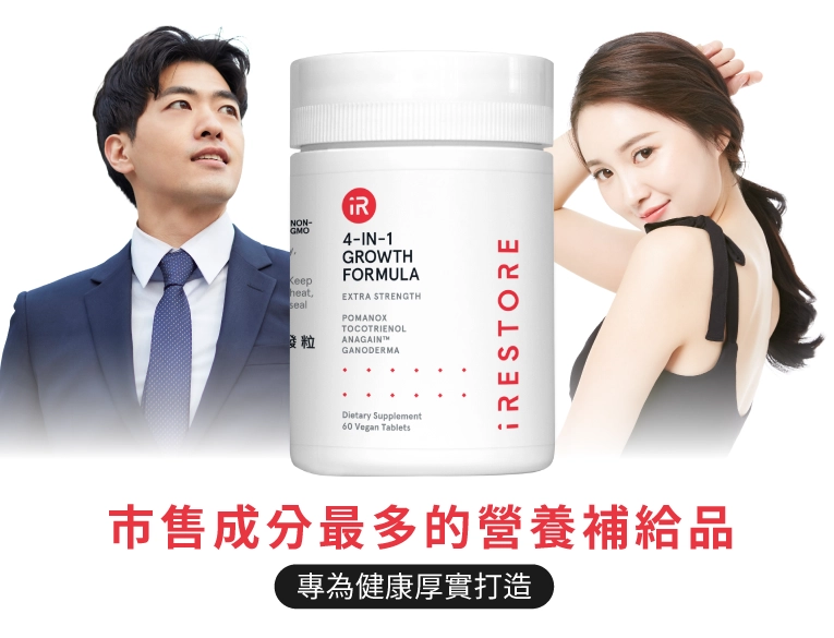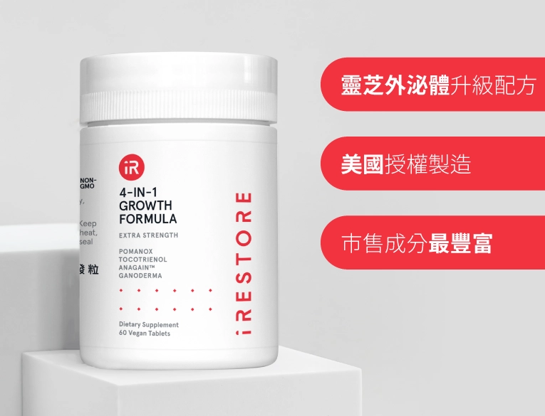 由美國醫學團隊打造,專為男女頂上健康厚實設計。採用靈芝外泌體升級配方,搭配西班牙Pomanox®濱海紅石榴專利成分、瑞士植萃激活因子AnaGain™,以及市售唯一的棕櫚果油等四種成分來達到強韌、穩固根基的效果。同時額外加入多種氨基酸與維生素,為市售成分最多的營養補給品。
