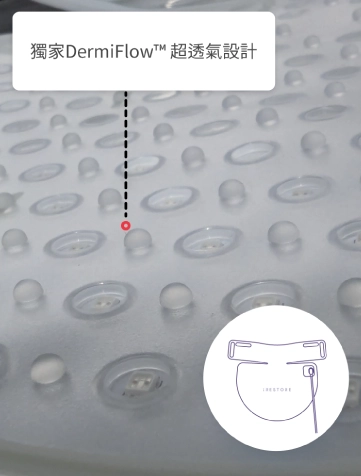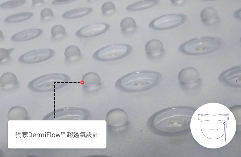 頸胸美膚儀採用創新獨家DermiFlow™超透氣設計,能帶動氣流循環,給您更舒適、無汗的體驗。