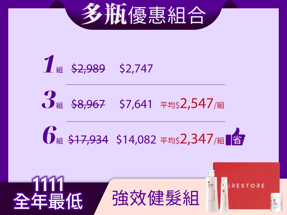 | 數量組合優惠 | 1組 $2,747 (現省$242), 3組 (現省$1,326,每組$2,547), 6組 (現省$3,852,每組$2,347) |